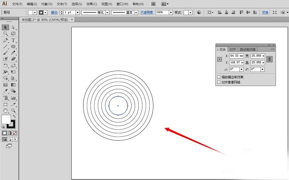 5、接着连续按住键盘上的ctrl+C,ctrl+F,ctrl+D多次,就可以得到如图所示的多个同心圆