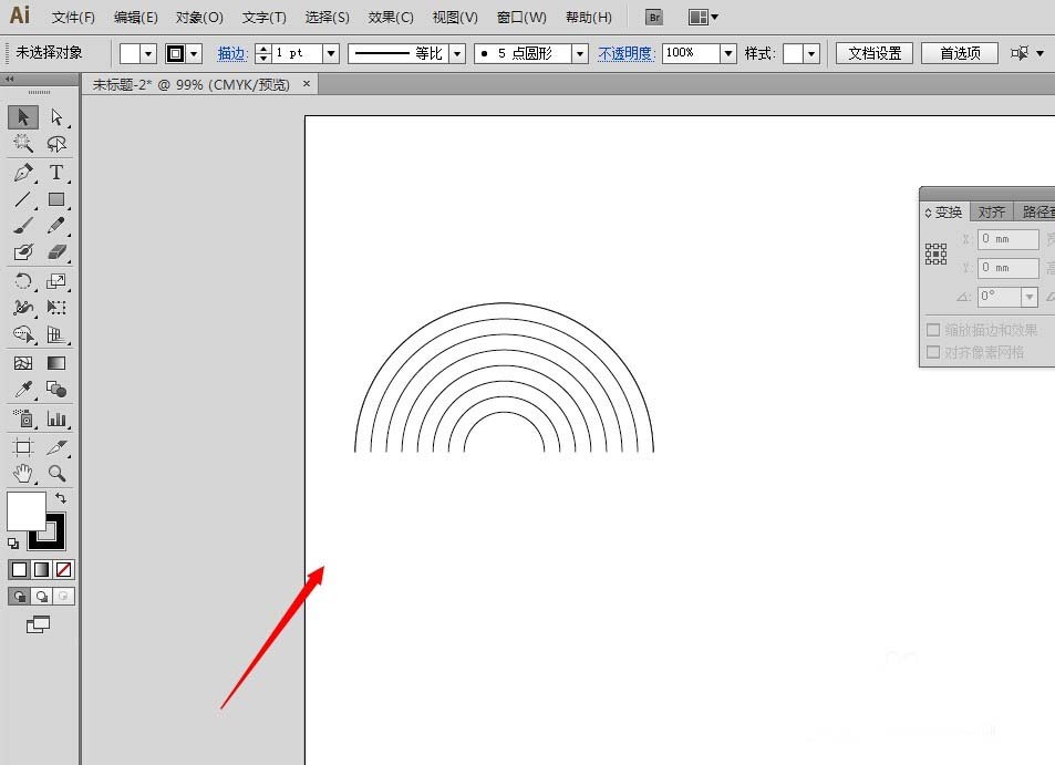 6、接着跟上一节的步骤一样,完成半个同心圆的制作