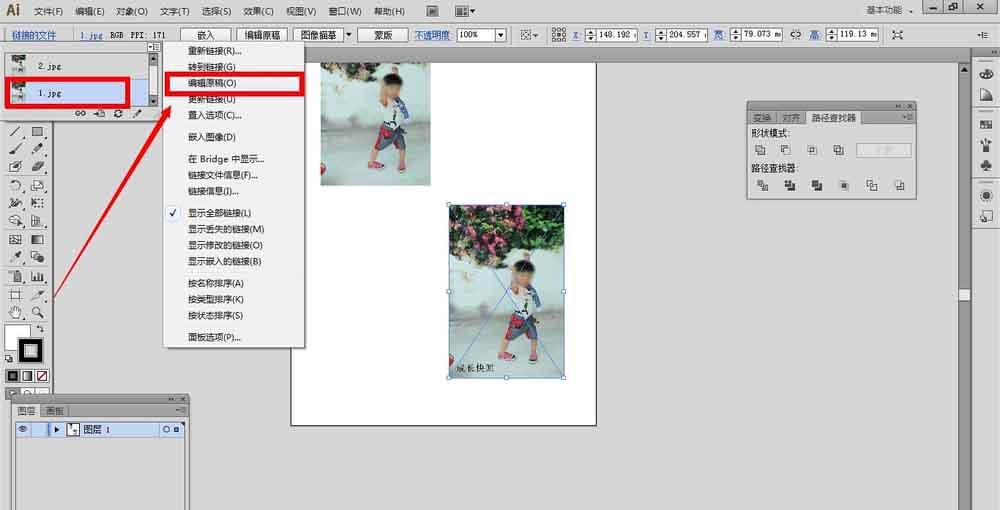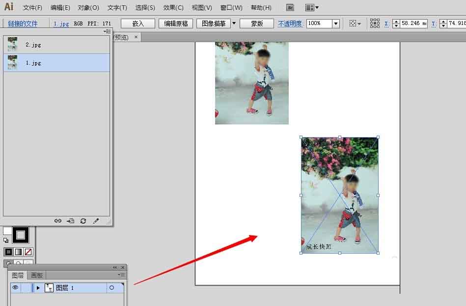 1、假如我们一起置入的是两张图片或者更多的图片