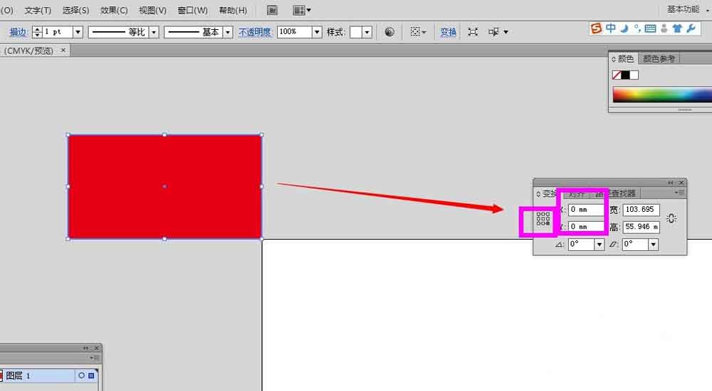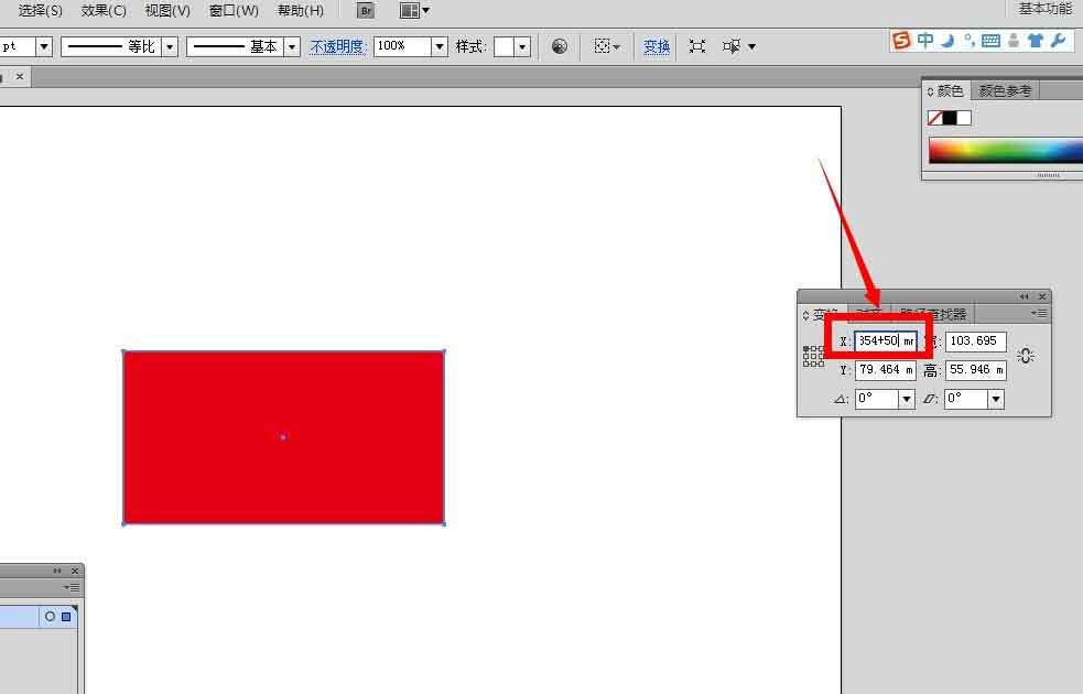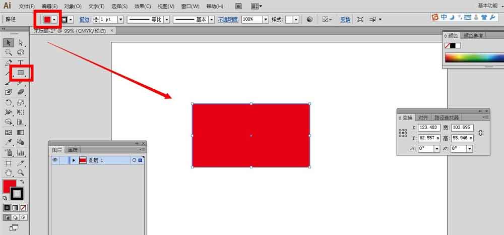 2、为了方便讲解变换面板的命令与使用,我们先在画布上绘制一个红色的矩形