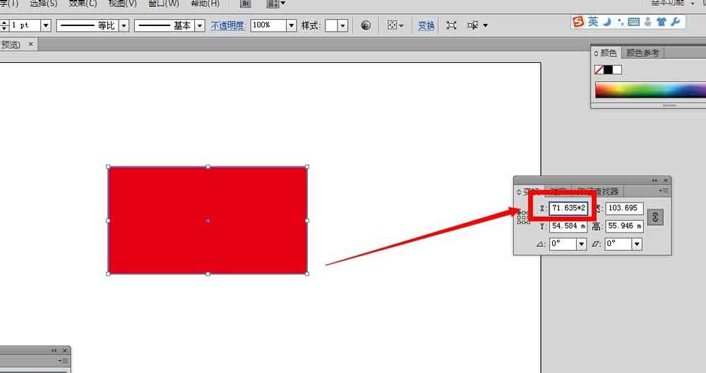 7、在ai软件里,图形的坐标XY值是可以直接地加减乘除的,比如,直接在原先的X值上打上“+50”,确定之后,图形就会得到新的X坐标,移动到新的位置上