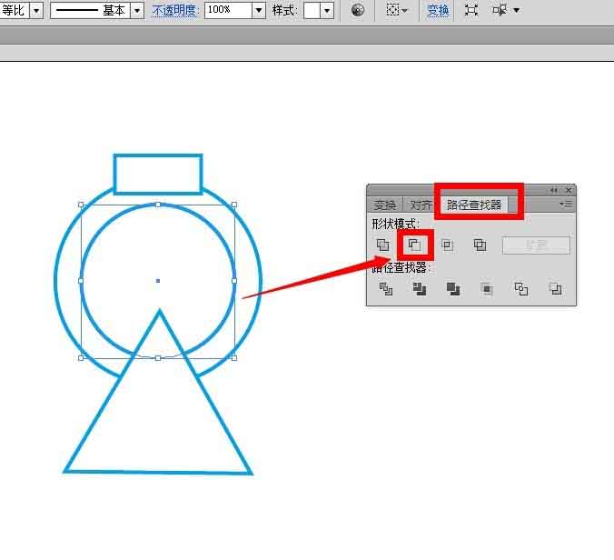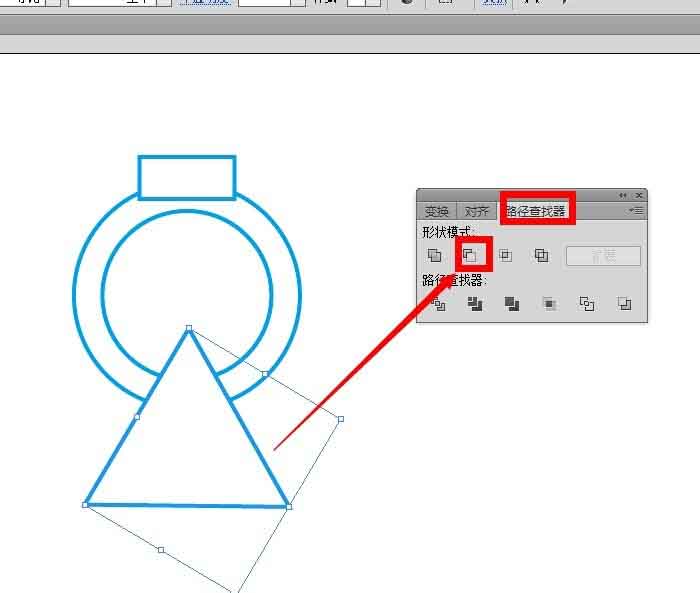 8、点击选中三角形,按住键盘的alt键,点击路径查找器面板的第二种形状模式“减去顶层”