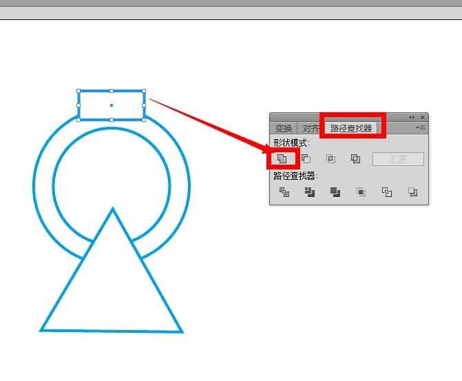 7、点击选中矩形,按住键盘的alt键,点击路径查找器面板的第一种形状模式“联集”
