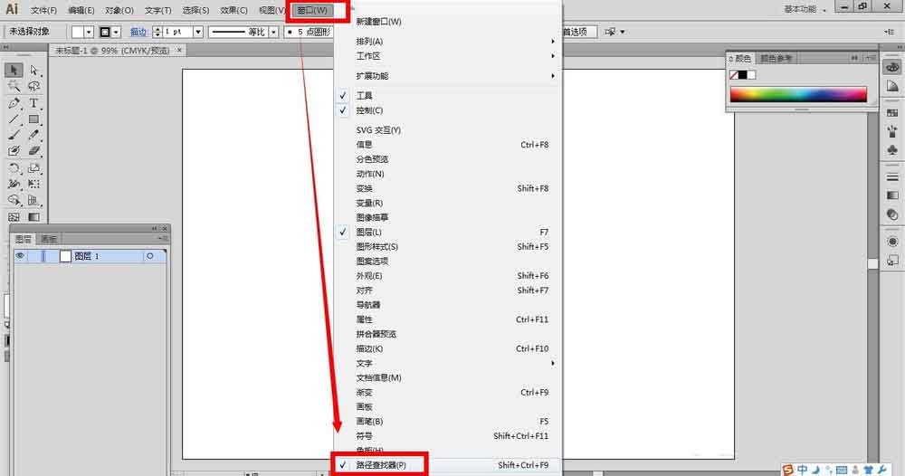1、打开ai软件,新建画布,然后点击“窗口”——“路径查找器”