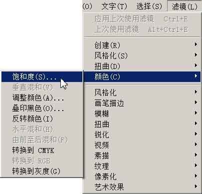 4、点击菜单里的 滤镜-颜色-饱和度。