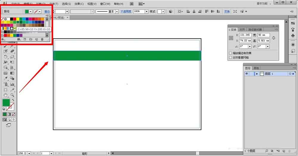 1、选择矩形工具,在轮廓里绘制一个合适的矩形,与外框一样长,并且把它填充为自己需要的颜色,比如绿色
