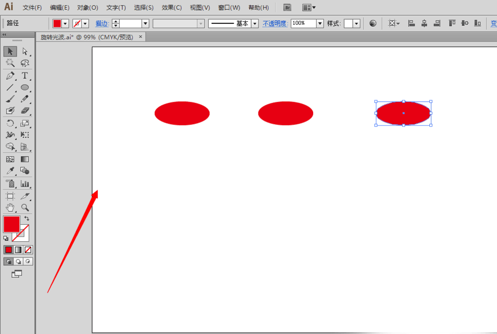 2、选中红色椭圆,按住alt键,水平往右多复制出两个椭圆图形