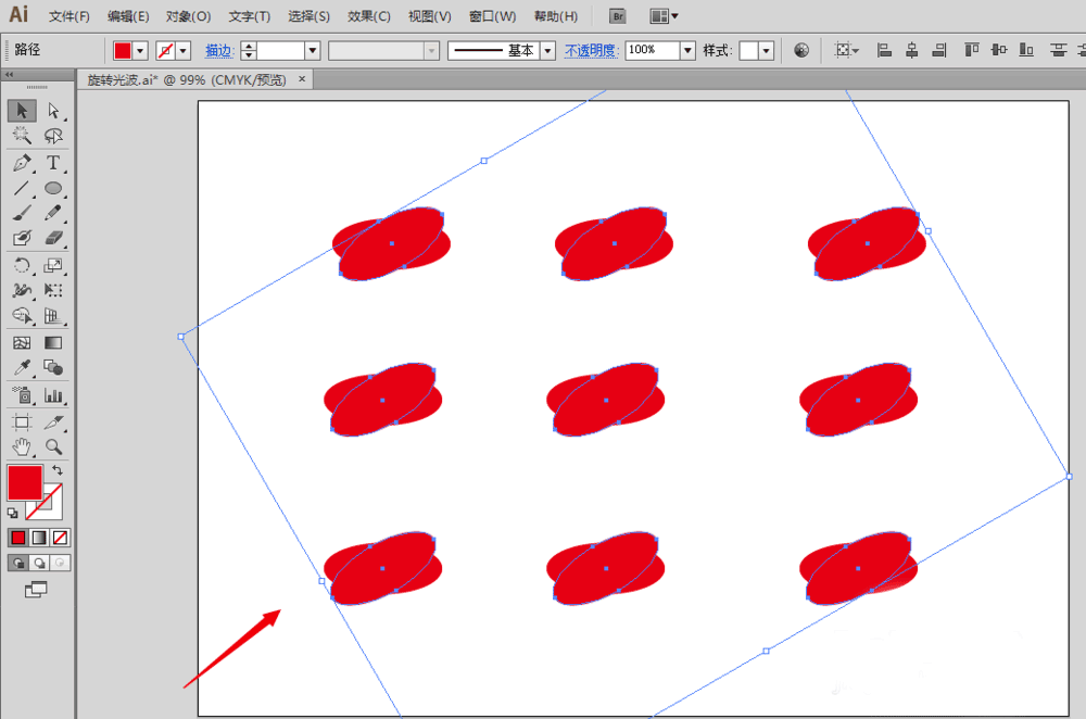 3、接着,同时选中三个椭圆,按住alt键,垂直向下多复制出两排椭圆图形,一共几个椭圆形