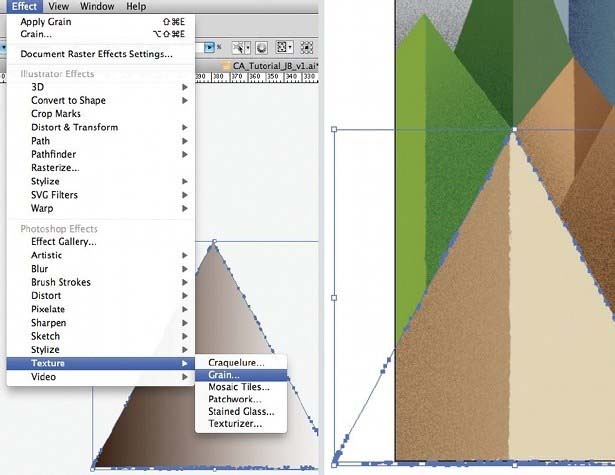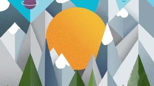 2、粗糙了图。现在,你有你的网格,粗糙你的插图,以确保您选择“对齐文档网格”(视图>网格和指南)。我创建了一个山景与太阳的焦点。我打开(我的统治者命令/按Ctrl + R)找到我的画布的中心。