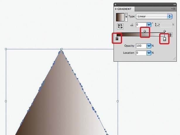 8、实验与渐变。您可以通过选择渐变工具,并拖动光标左到右,反之亦然你梯度的方向和规模实验。调整渐变面板中的滑块也可以控制渐变的大小。体验这个过程:长渐变引领你进入一个设计; 总之,陡坡创造阴影效果。