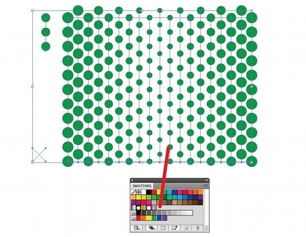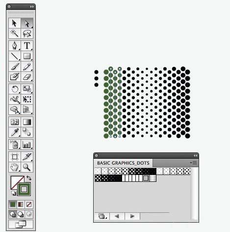 9、添加半色调图案。下一步,我们要添加一些半色调模式。Utilising另一预先设置面板在Illustrator中,打开色板下拉菜单,去打开色板库>模式>基本点。我们要自定义颜色,以满足我们的调色板