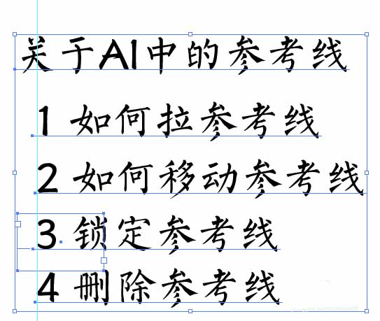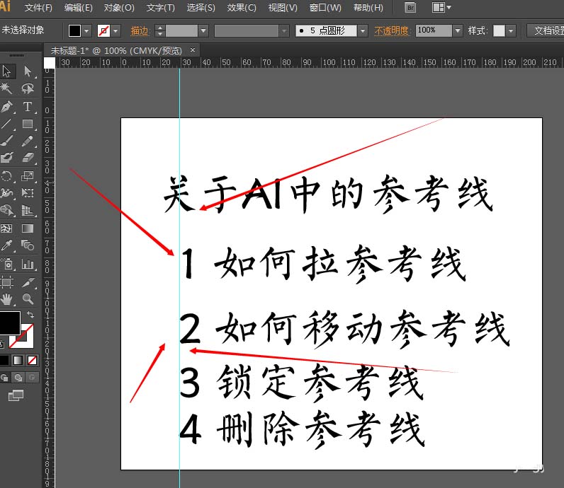 6、第三个锁定参考线 如图 视图-参考线-锁定参考线 勾打上的(这个是AI默认的状态) 勾打上了 可以拉出参考线 但是无法对参考线进行移动和删除