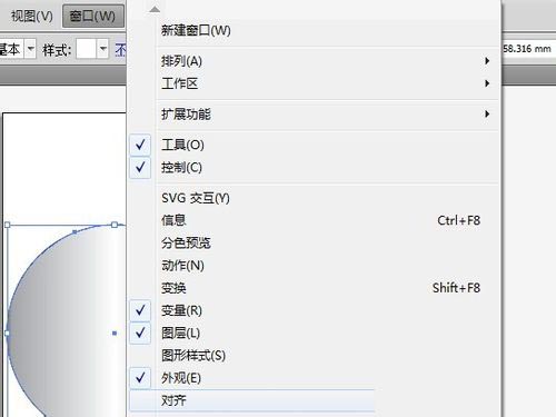 3、之后我们打开窗口这一个菜单栏,在里面我们在找到一个对齐的选项或者是快捷键Shift+F7