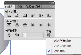 5、我们先是打开右下方的对齐选项,在里面选择好所要对齐的目标。一般我们是以画板为标准的