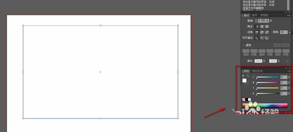 3、矩形框出来了,我们再在右侧的“颜色”面板上调一下色。如果你看不到颜色面板,从顶部菜单“窗口”里调出。