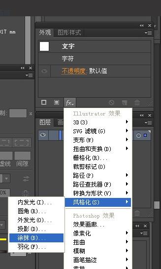 7、调出外观面板,如图,点到下面的FX按钮,选风格化-涂抹。