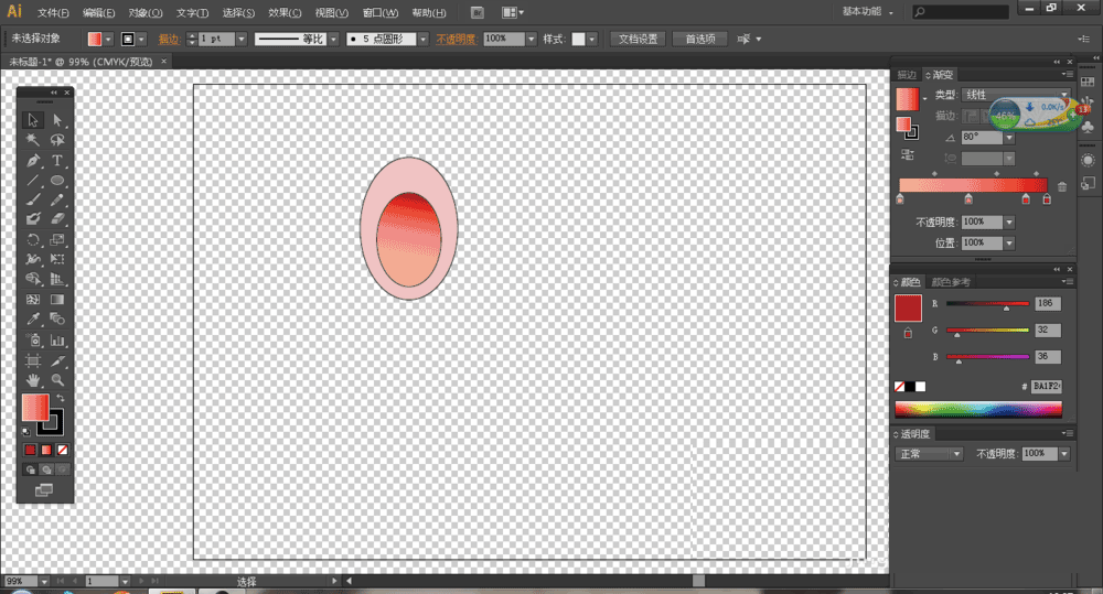 5、用渐变工具,把里面的颜色渐变一下让他变得有厚度感!