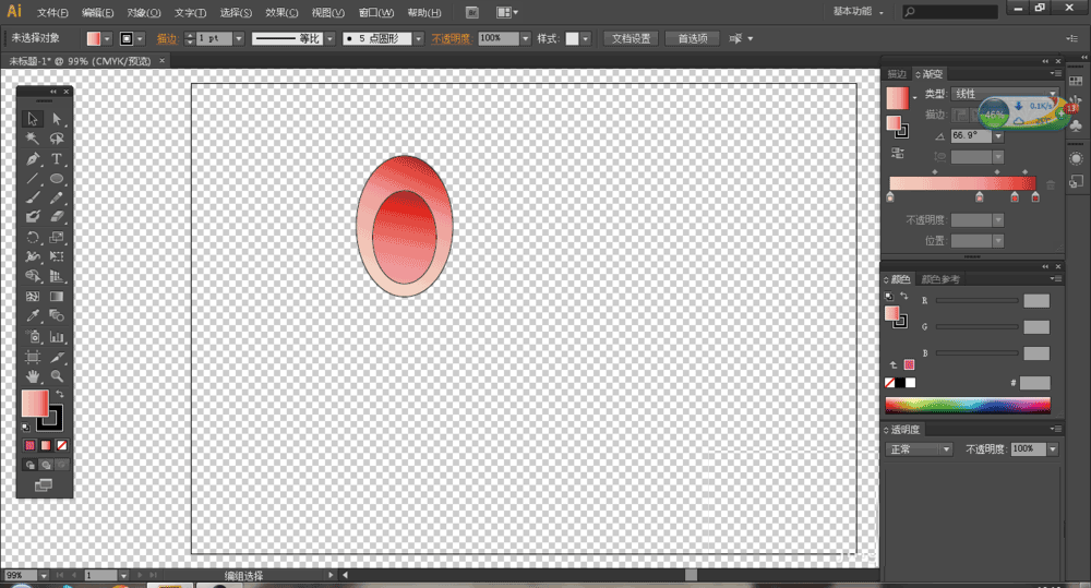 6、在用渐变工具把外面的图形也渐变一下,让他也有厚度感!