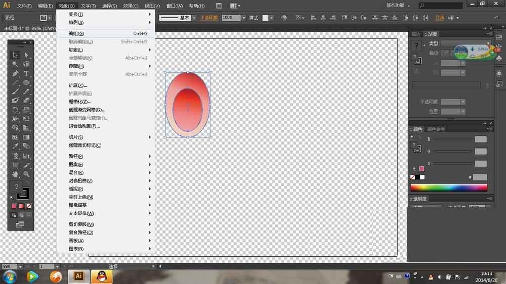 7、最后点击上变得上方对象一栏,进行编组,一个卡通的耳朵就出来了