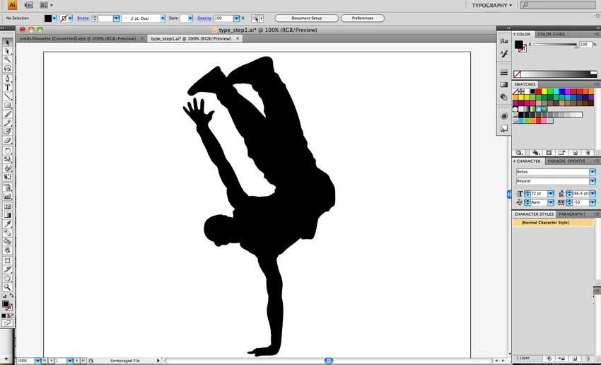 打开Adobe Illustrator中的矢量剪影和适合屏幕。我们将使用这个剪影为指导,以铺设文本。