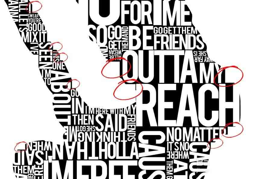 笔者随机奠定了文本在不同的方向,地点和大小,给它更多的个性。一定要伸出了轮廓边缘的文字只是一个提示勾勒出这样我们有一些边界。