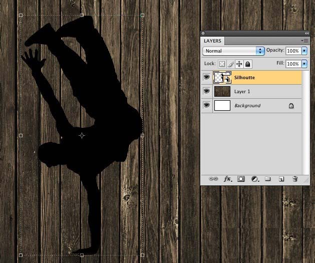 当选择“画图标记”图层,按Ctrl+单击剪影层(命令Mac)来获得轮廓勾勒的选择。