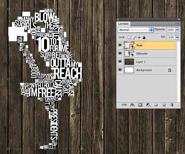 4、您可以使用矩形工具填补了空白区域,像我一样在这里。这有助于重新创建剪影的轮廓,一旦我们除去黑色载体。如何在木材表面创建文字彩绘