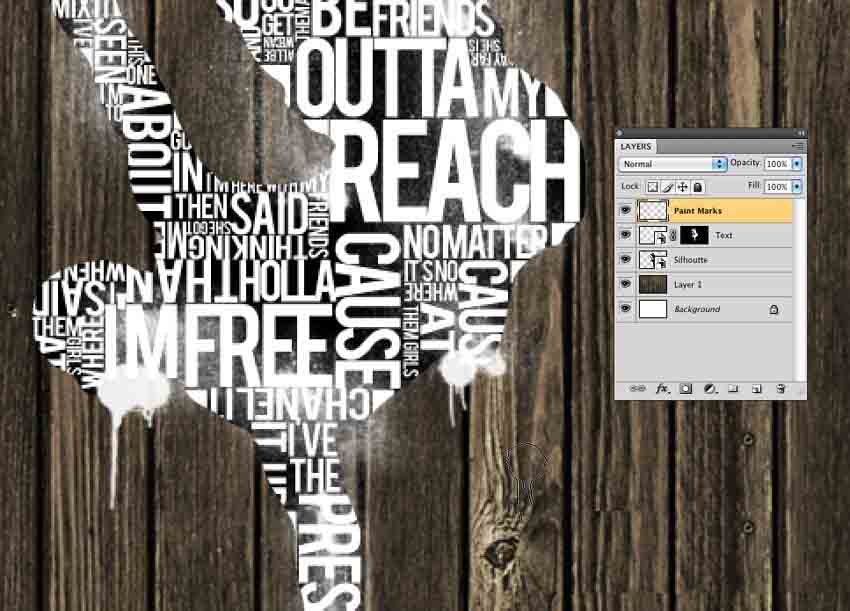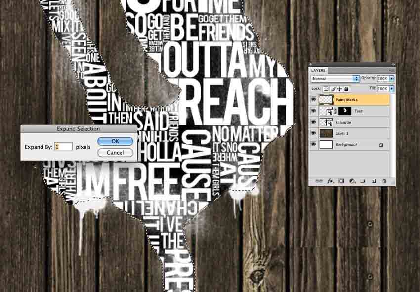 创建一个新图层,并命名为“漆商标” 选择相同的色板颜色的文字,在我的情况下,白色(#FFFFFF),并用蹩脚的画笔和应用周围的轮廓边缘招。 您可以通过下载我收集的发现右上角的侧边栏1000+刷下载我使用的是相同的刷子。