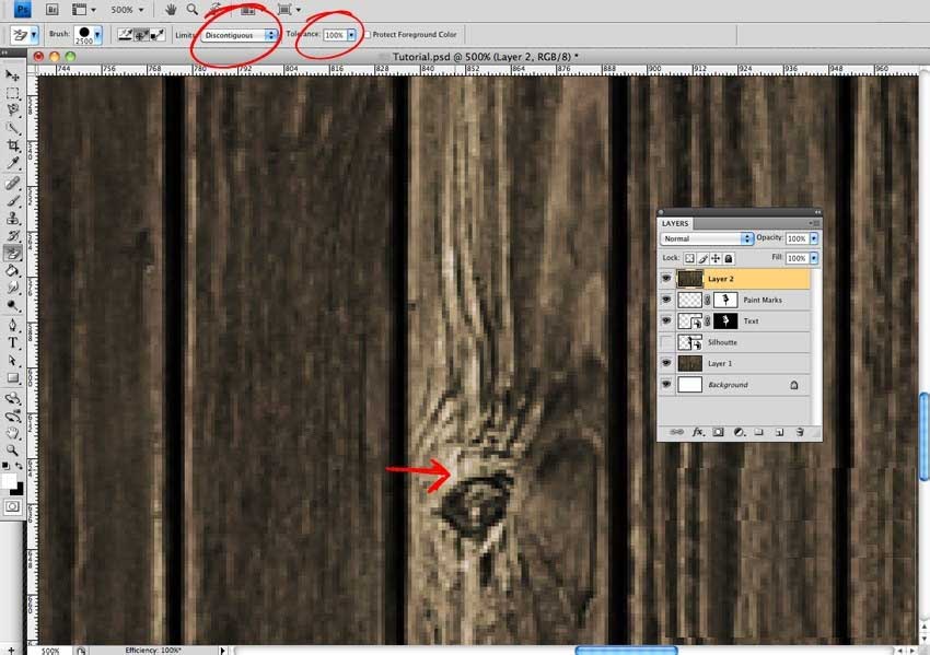 在该背景橡皮擦工具画笔设置,确保限制为“不连续”的宽容是“100%”。