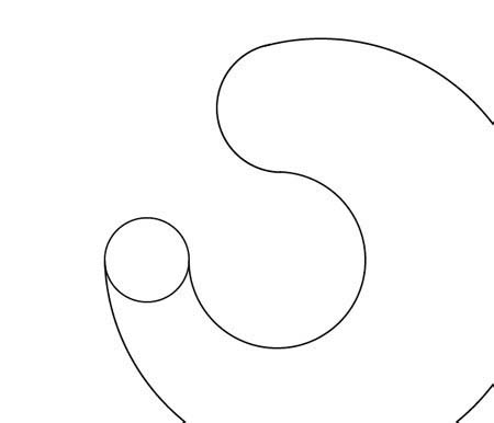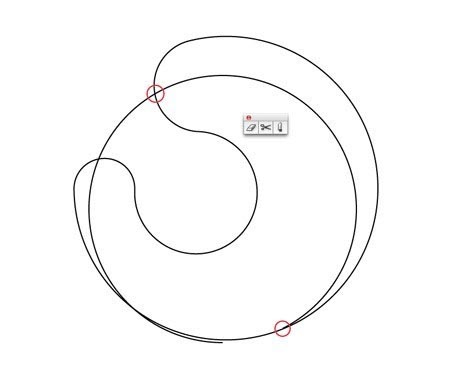 6、使用剪刀工具切点处的两条线相交,并删除了过量,只留下一个沿图形的内部流动线。