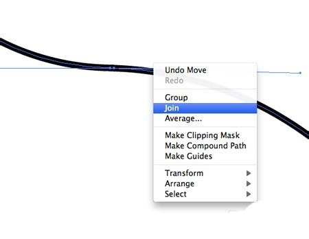 4、放大并从每个路径选择两个点开放,右键单击并选择加入。重复此对每个限幅线以形成一个连续的路径轮廓。做出这种形状的副本,我们将在以后需要它
