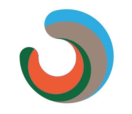 10、继续这个过程,剩余的部分,从相交线创建流畅的形状。添加随机颜色填充到每一块。