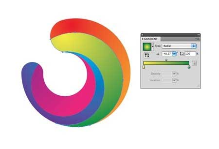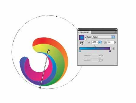 12、开关渐变样式径向和调节流量,使颜色很好沿着该形状的方向运行。