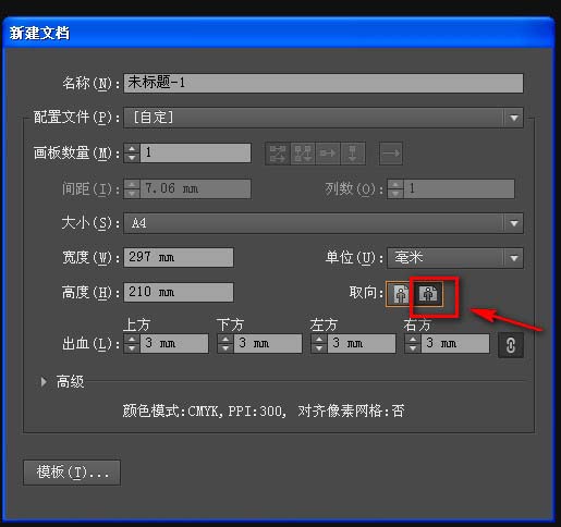 1、首先我们打开AI软件,点文件-新建,弹出对话框,我们注意将文档变成横向。