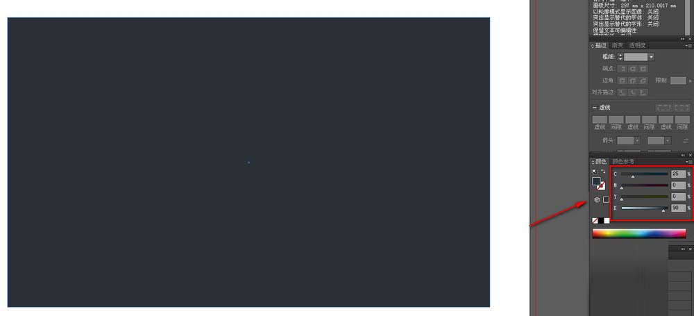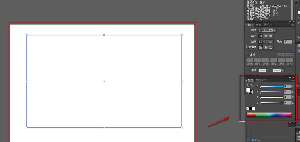 3、矩形框出来了,我们再在右侧的“颜色”面板上调一下色。如果你看不到颜色面板,从顶部菜单“窗口”里调出。