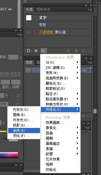 7、调出外观面板,如图,点到下面的FX按钮,选风格化-涂抹。