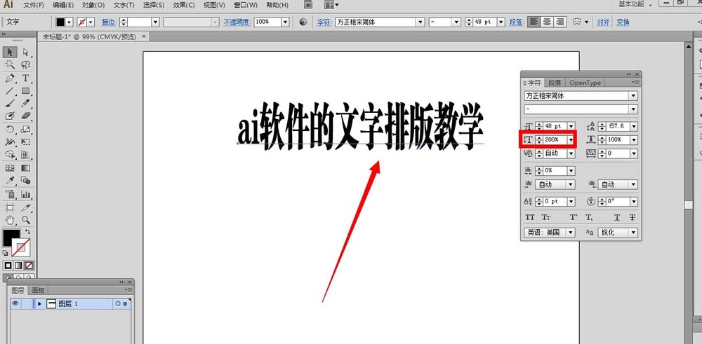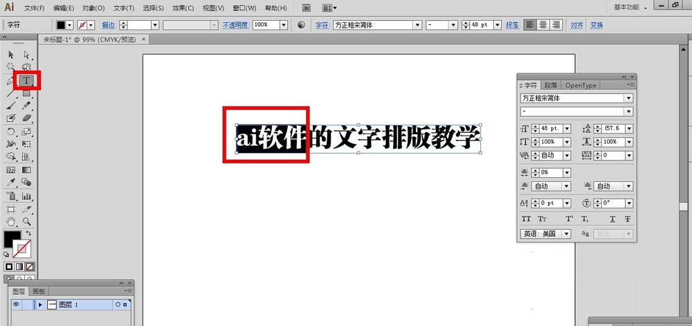 6、刚才是全部文字内容设置,如果想要让文字内容的某几个字,某部分缩放呢?选择文字工具,然后选中想要设置的文字内容