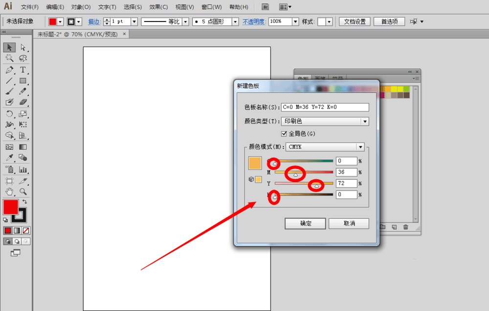2、点击“新建色板”的按钮以后,会弹出一个“新建色板”的设置面板