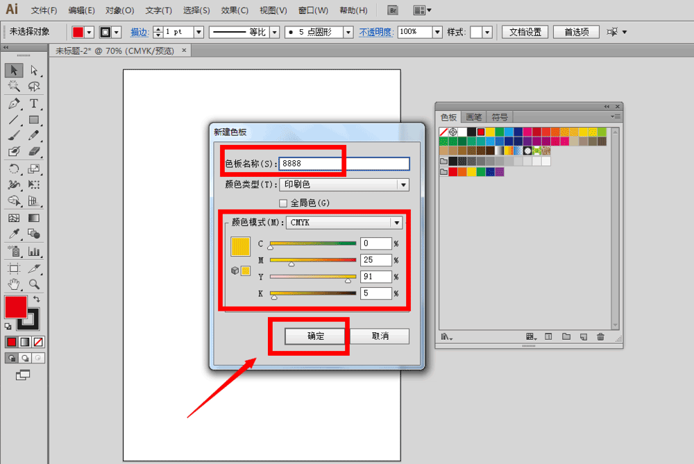 7、确定以后,我们就可以在色板上找到我们刚才新建的色块了。