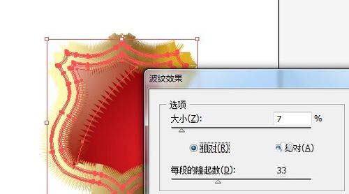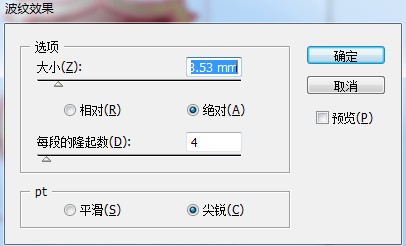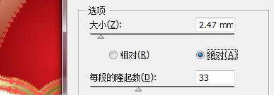 5、接着再选项中的选区中我们可以直接的对波纹的大小进行调整变换