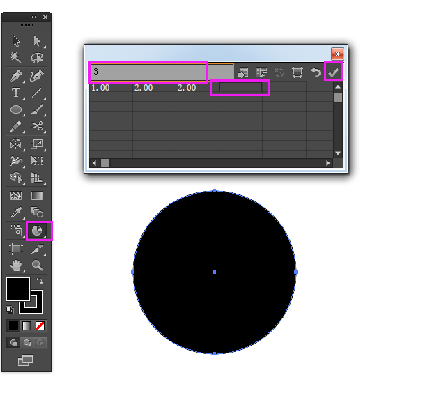 1. 选择工具箱中的“饼图工具”,绘制,然后输入或者导入数据,单击“确定”。