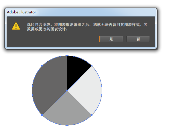 2、执行“对象——取消编组”,或者按下快捷键:shift+ctrl+G。此时会弹出如下对话框,提示:选区包含图表。将图表取消编组之后,您就无法再访问其图表样式、其数据或更改图表设计。如果单击是,取消编组,就意味着失去图表数据等属性,之后就不能再更改数据。图表也就不能自动更新。