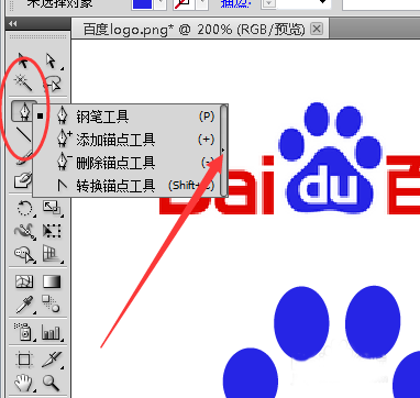 1、首先打开所需要的软件Adobe Illustrator CS5,然后找出一张百度logo图,可以去百度首页截屏或者在网上搜索。