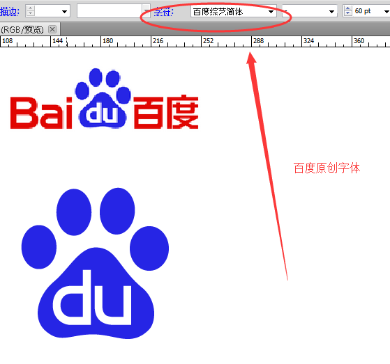6、最后我们就可以在上面填字了,在此我必须强调一下,大家在使用字体是可以选择自己喜欢并且适用的字体,但是百度logo中的字体是百度爱好者团队原创的——百度综艺简体字,喜欢的可以去网上下载这个字体包。