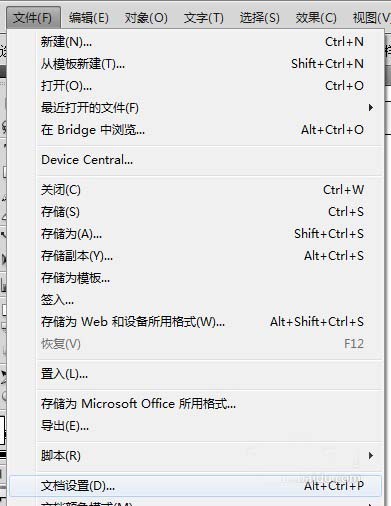 6、或者是直接打开文件菜单栏,之后在打开里面的文档设置选项或者是快捷键Alt+Ctrl+P
