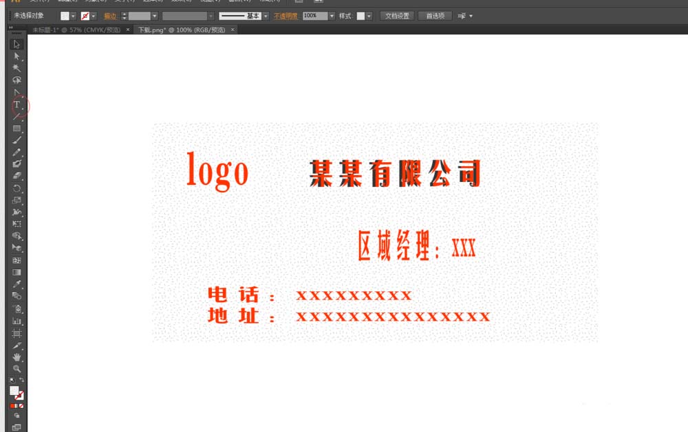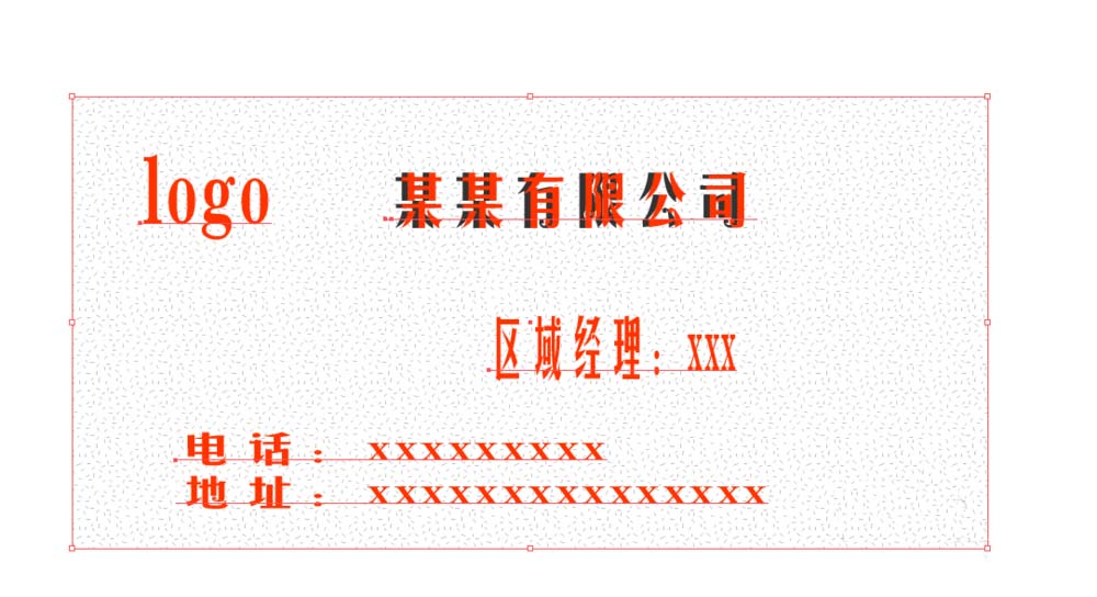 4、输入文字:建立图形之后,我们需要输入自己的联系方式,姓名,及所属单位,或者公司地址,企业logo等等。我们点击工具箱中的文字输入,然后在这个矩形中一次输入文字。(如下图)