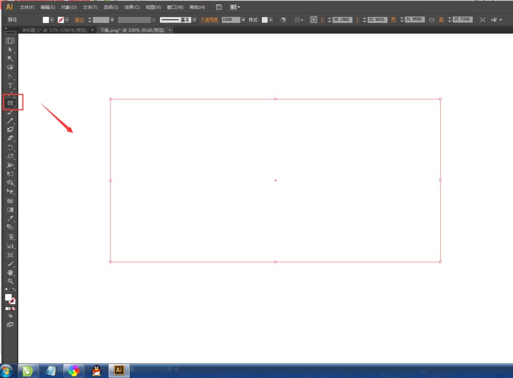 2、绘制一个矩形:点击标题栏中的矩形工具,在新建文件中绘制一个矩形大小为90mmx53mm的矩形。(如下图)