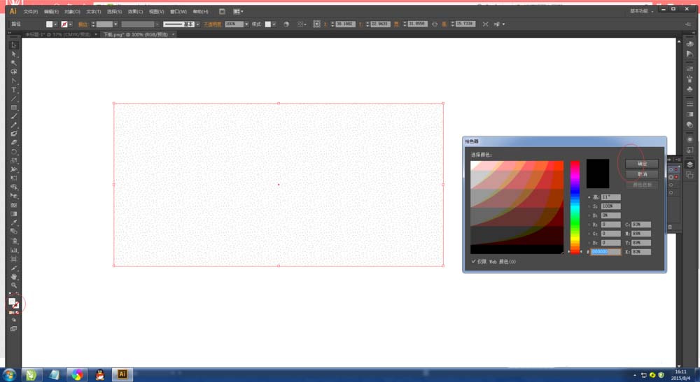 3、填充花纹:在建立矩形之后,我们需要对这个矩形进行填充颜色,单击工具箱中的填充工具,在弹出的窗口中进行调色,选择自己喜欢的颜色上去。点击确认。(如下图)
