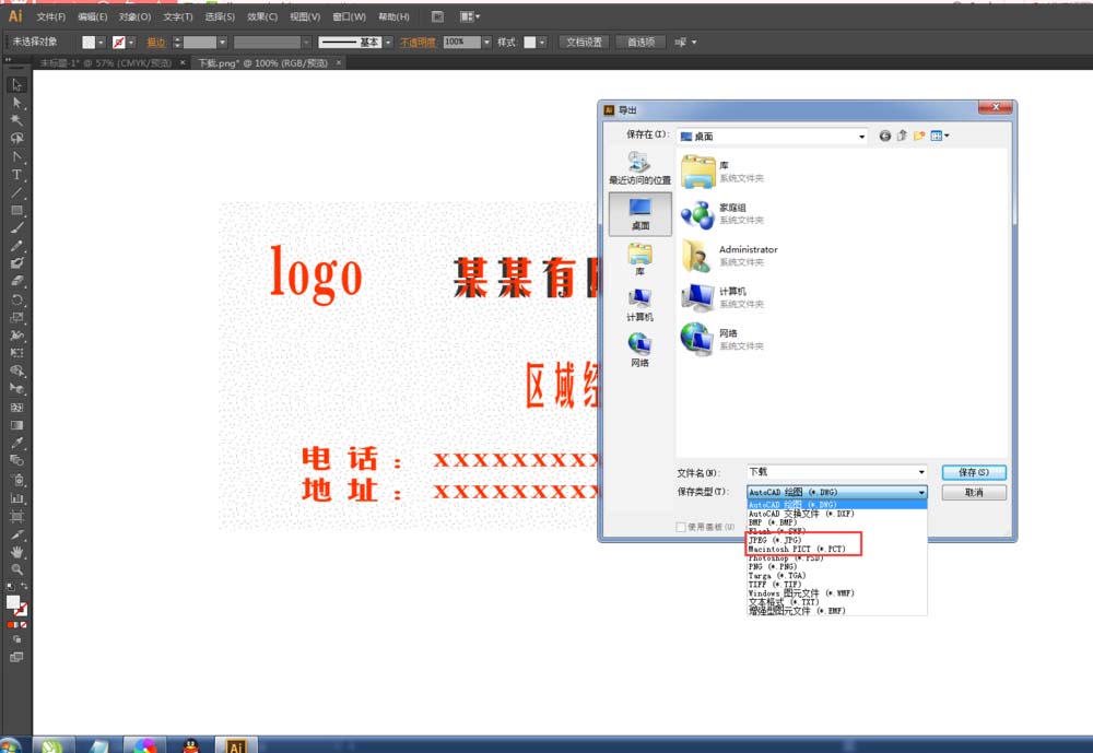 6、导出JPG格式:在我们做好名片之后,我们都需要导出文件,导出之后让顾客看一下名片的效果。如果效果合适的话,那么我们好及时发给喷绘公司,或者名片制作公司打印。(如下图)