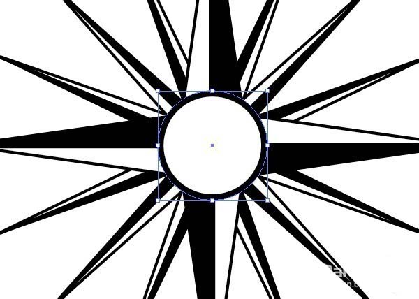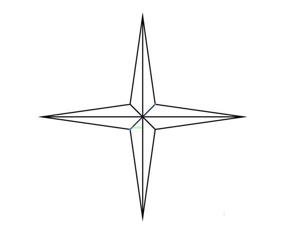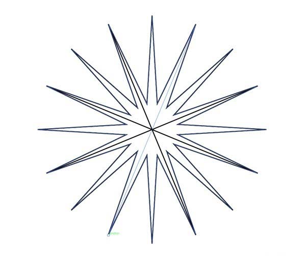 6、绘制另一颗恒星,这一次16分和更多的锐角。确保这个新的明星是稍微比以前小,所以北,东,南与西点不重叠。重复绘制相交线和瓜分的形状,形成另一颗恒星的设计过程。